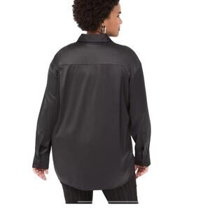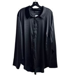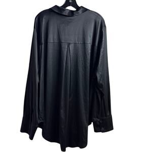 Lane Bryant Black Classic Satiny Button Down Boyfriend Shirt Size 28 No Peek NEW