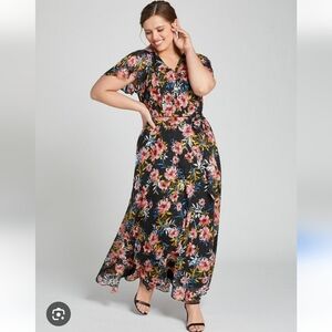 Lane Bryant Black Colorful Floral Modest Feminine Textured Maxi Dress Size 14