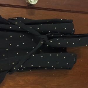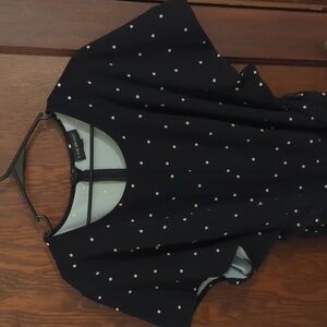 Lane Bryant Black & Cream Polka Dot Short Sleeve Belted Peplum Blouse Size 26