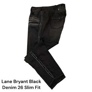 Lane Bryant Black Denim Slim Fit SKINNY Slim Leg Embellished Seam Jeans …