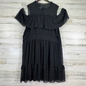Lane Bryant Black Eyelet Lace Cold Shoulder Ruffle Lined Dress Plus Size 28