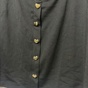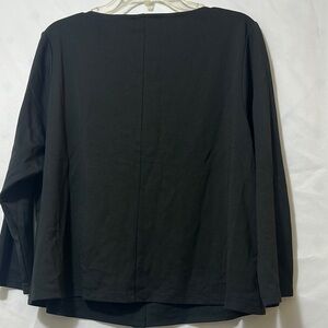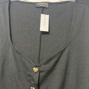 This elegant black blouse from Lane Bryant features a fitted silhouette with a buttoned front, perfect for a polished appearance. The long sleeves enhance its sophisticated style, making it ideal for both professional and casual settings.
