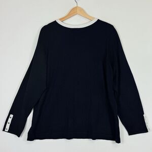 Lane Bryant Black Half Button Front Fine Knit Pullover Sweater. White trim around the neckline and cuffs. Women's 22/24.