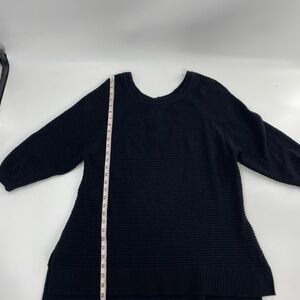 Lane Bryant Black Knit Boxy Button BACK Sweater 18/20 EUC. Has elbow length sleeve with a tight knit and 3 button back detail. Side splits for comfort.