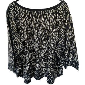 Lane Bryant Black Long Sleeve Shirt With Metallic Feather Pattern