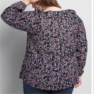 Lane Bryant Black & Pink Floral Smocked Peasant Blouse metallic thread size 22