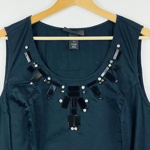 Lane Bryant Black Poplin Sleeveless Stud Beaded Accent Tank Top. Slight bit of stretch, hidden side zipper. Womens 24.
