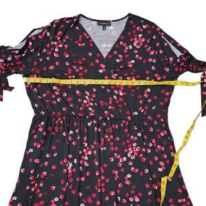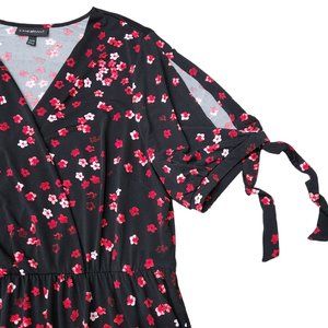 Lane Bryant Black Red Floral Faux Wrap Surplice V-Neck Split Tie Dresss 22/24
