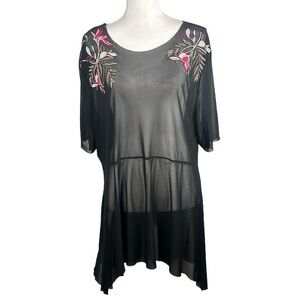 Lane Bryant Black Sheer Floral Boho Embroidered Short Sleeve Top Size 22/24