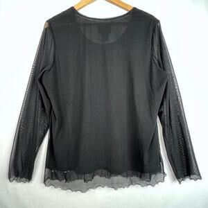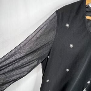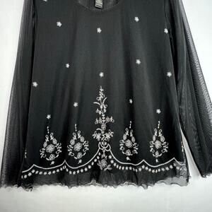 Lane Bryant Black Sheer Sleeve Embroidered Blouse 14/16
