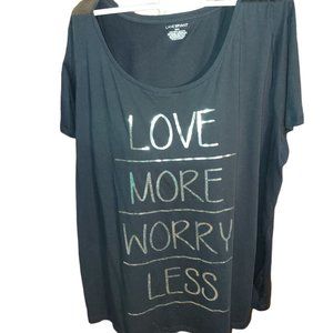 Lane Bryant Black Short Sleeve Shirt Love More Worry Less Women's Size 22/24 NWT