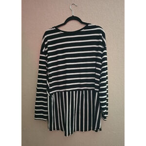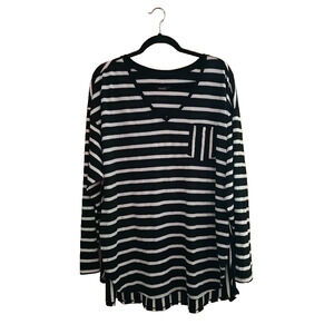 Lane Bryant Black Striped V-Neck Pocket Long Sleeve Top Womans Plus Size 22/24