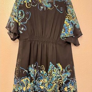 Lane Bryant Black Tunic with Blue and Yellow Pattern