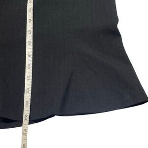 Features and details: some stretch, no pockets, medium weight tweed material, fitted and flared trumpet cut, ruffled hem, zipper closure on back