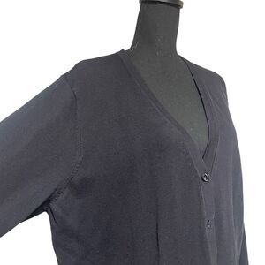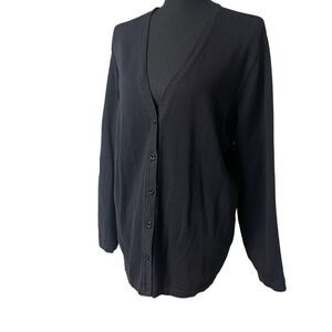 Features and details: stretch, no pockets, v neckline, button front with oblong buttons, all buttons present, light to medium weight, size and material tag removed so please refer to measurements