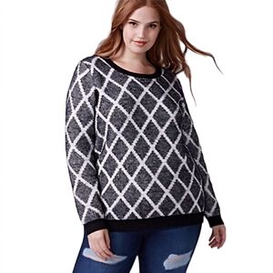 Lane Bryant Black White Diamond/Chevron Pattern Sweater