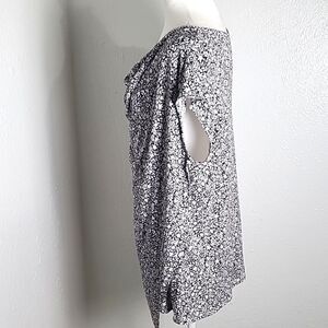 Lane Bryant Black & White Draped Jersey Floral Tunic Top Cowl Neck, Size 14/16