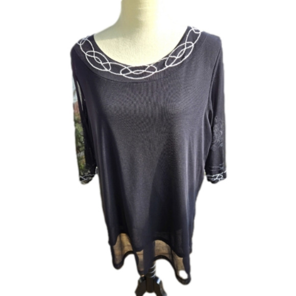 Lane Bryant Black & White Embroidered Top