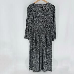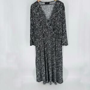 Elegant and comfortable Lane Bryant black and white floral maxi dress in size 22/24. Features a soft, stretchy fabric with a flattering wrap-style V-neckline and long sleeves — perfect for year-round wear. Dress it up with heels or keep it casual with sandals or boots.