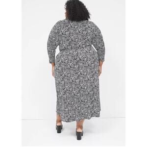 Lane Bryant Black White Floral Maxi Dress 22/24 Plus Wrap Style Long Sleeve