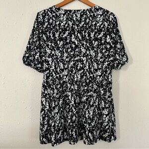 Lane Bryant Black White Floral Puff Sleeve Sweetheart-Neck Surplice Peplum Top