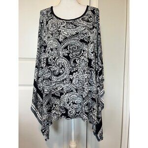 Lane Bryant Black & White Paisley Poncho Blouse Top Size 26 / 28 Swirl Flowy