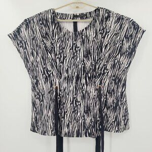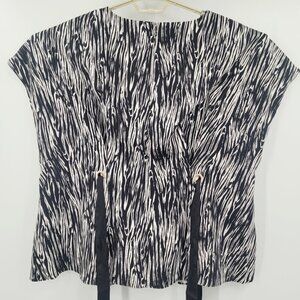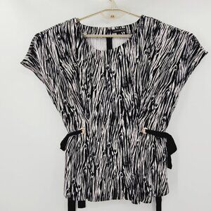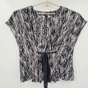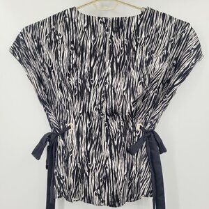 Lane Bryant Black & White Patterned Blouse with Ribbon Ties