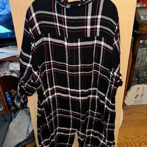 Lane Bryant Black & White Plaid 3/4 Sleeve Pink Detail Collar Button Down Shirt