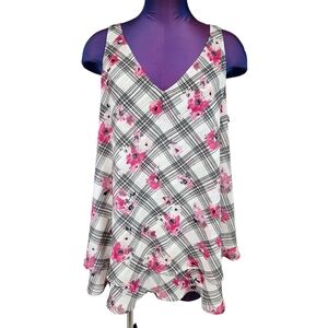 In like new condition Lane Bryant Black White Plaid Pink Floral Print Layered Chiffon Top Size 16.