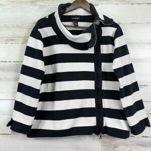 Lane Bryant Black White Striped Asymmetrical Zip Sweater Womens Plus Size 18 20