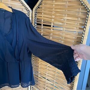 Lane Bryant Black Wrap Long Sleeve Blouse top plus size 22 sheer polka dot