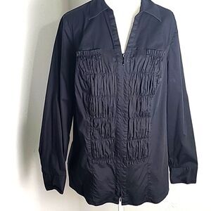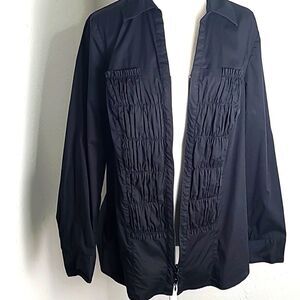 Lane Bryant Black Zip-up Blouse/Jacket with Shirred Elastic on Front, Size 14/16