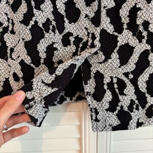 Description: classy black and light grey lace pencil skirt with a back zipper closure. The material is very stretchy.