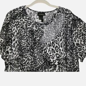 Lane Bryant Black and White Animal Print Twisted Keyhole Top Sz 14-16