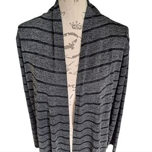 Women's Plus size grey metallic black open front long minimalist lagenlook striped cardigan sweater by Lane Bryant, size 26/28, new with tags