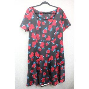 Lane Bryant Black w/Roses Fit and Flare Midi Dress-Size 14-Whimsigoth