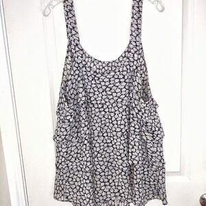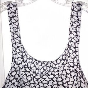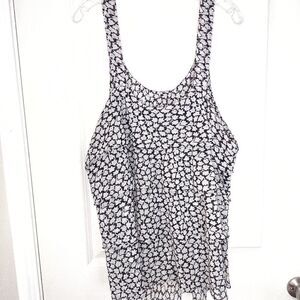 Lane Bryant Black and White Chiffon three tiered top ruffles. 1" Straps, low scoop neckline with scattered Sequins on front bodice neckline.