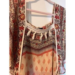Lane Bryant Blouse 18/20 Cream Pink Brown Butterfly Sleeves Sheer Flowy Bohochic