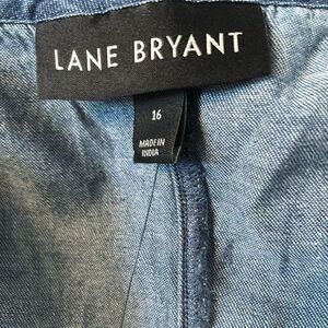 Lane Bryant Blouse Denim Smocked Waist Off Cold Shoulder jean shirt top size 16