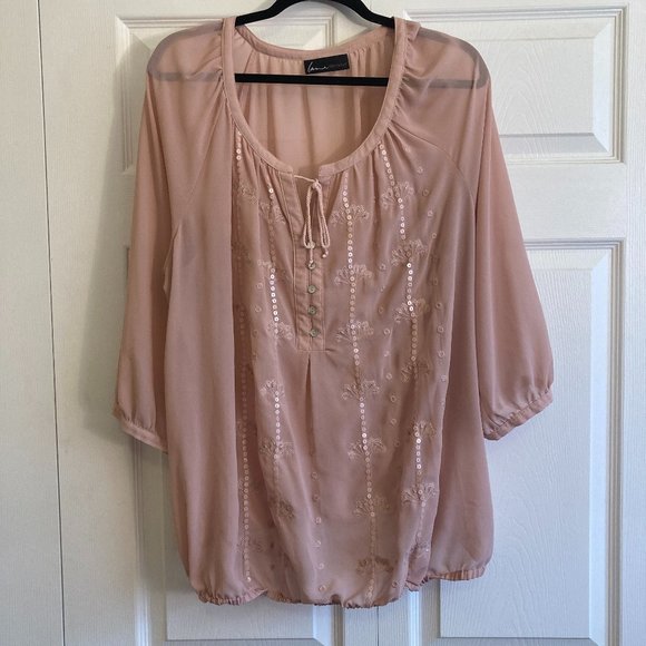 Lane Bryant Blouse Sequin Embellished Dusty Rose Top Shirt Plus Size 2XL