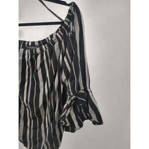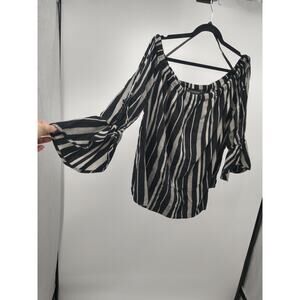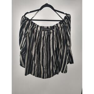 Lane Bryant Blouse Top Plus 14/16 Striped Off The Shoulder 3/4 Bell Sleeve Black