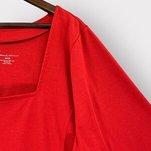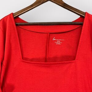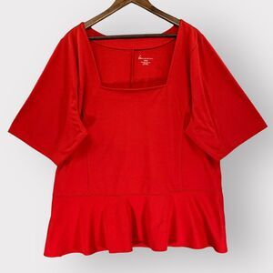 Lane Bryant Blouse Women 26/28 Red Peplum Hem Square Neck Stretch E56