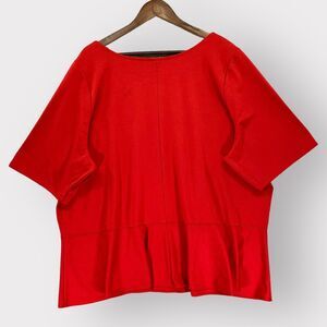 Lane Bryant Blouse Women 26/28 Red Peplum Hem Square Neck Stretch Short Sleeve