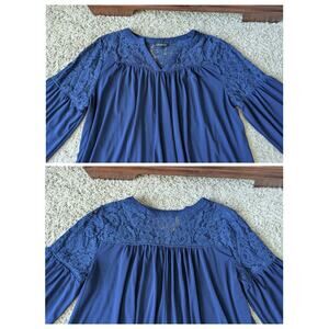 Lane Bryant Blouse Womens 18/20 Blue Bell Sleeve Lace Fairy Grunge Corporate Vampire Boho Lagenlook