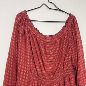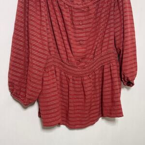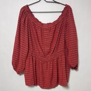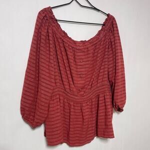 Lane Bryant Blouse Women's 18/20 Striped Peasant Scoop Neck Peplum Top BOHO