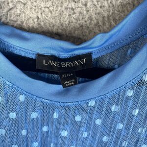 Lane Bryant Blouse Womens 22/24 Blue Polka Dot Knit Sheer Sleeveless Lined