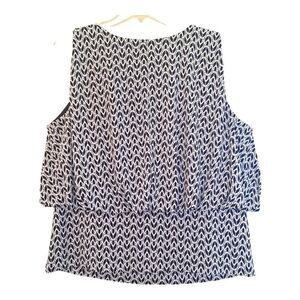 Lane Bryant Blouson Tank Blouse Top Liquid Knit Geo Print Black White plus size 18 / 20