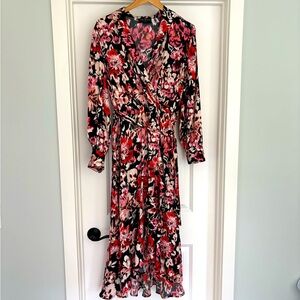 Lane Bryant Blouson-Sleeve Shawl-Collar Faux-Wrap Midi Dress Size 16