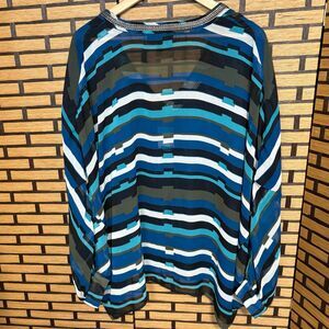 Lane Bryant Blue And Black Sheer Beaded Neckline Drop Shoulder Blouse Size 18/20