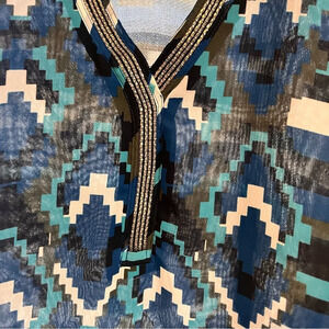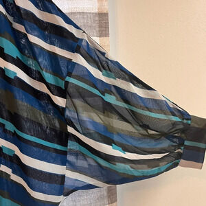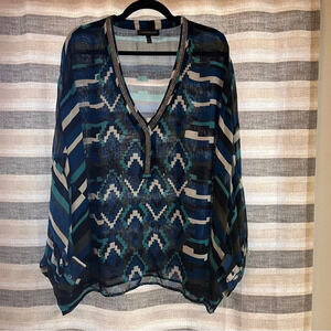 Lane Bryant Blue And Black Sheer Beaded Neckline Drop Shoulder Blouse Size 18/20